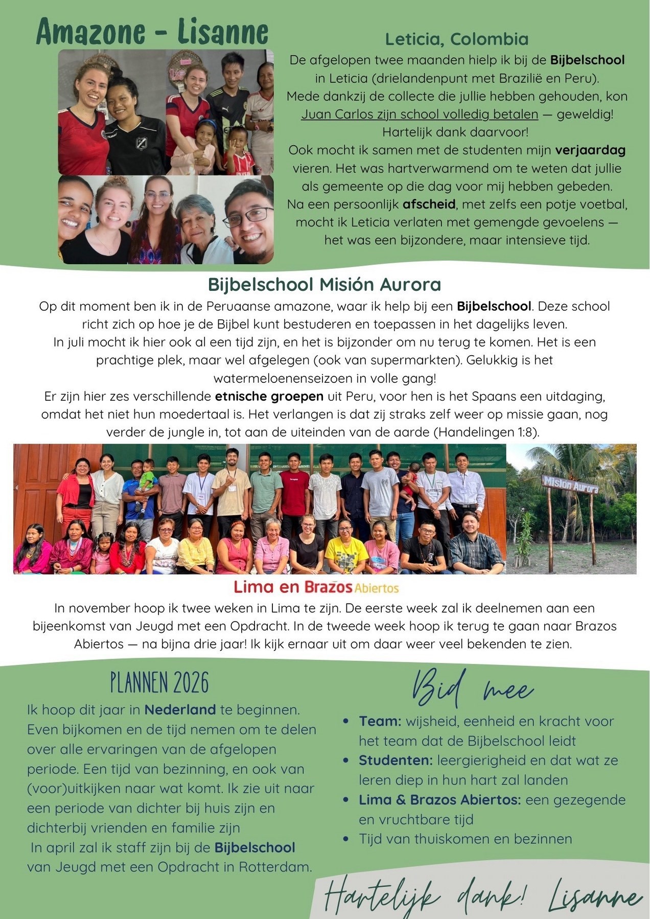 Wij zijn als gemeente bijzonder betrokken bij de volgende 3 bedieningen:Brazos Abiertos - een bediening van Jeugd met een opdracht - in Peru